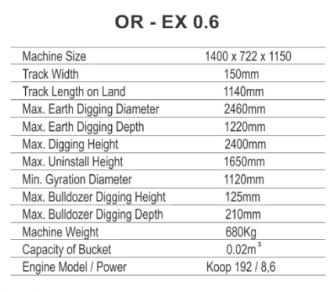 OR MINI EXCAVATOR 0.6