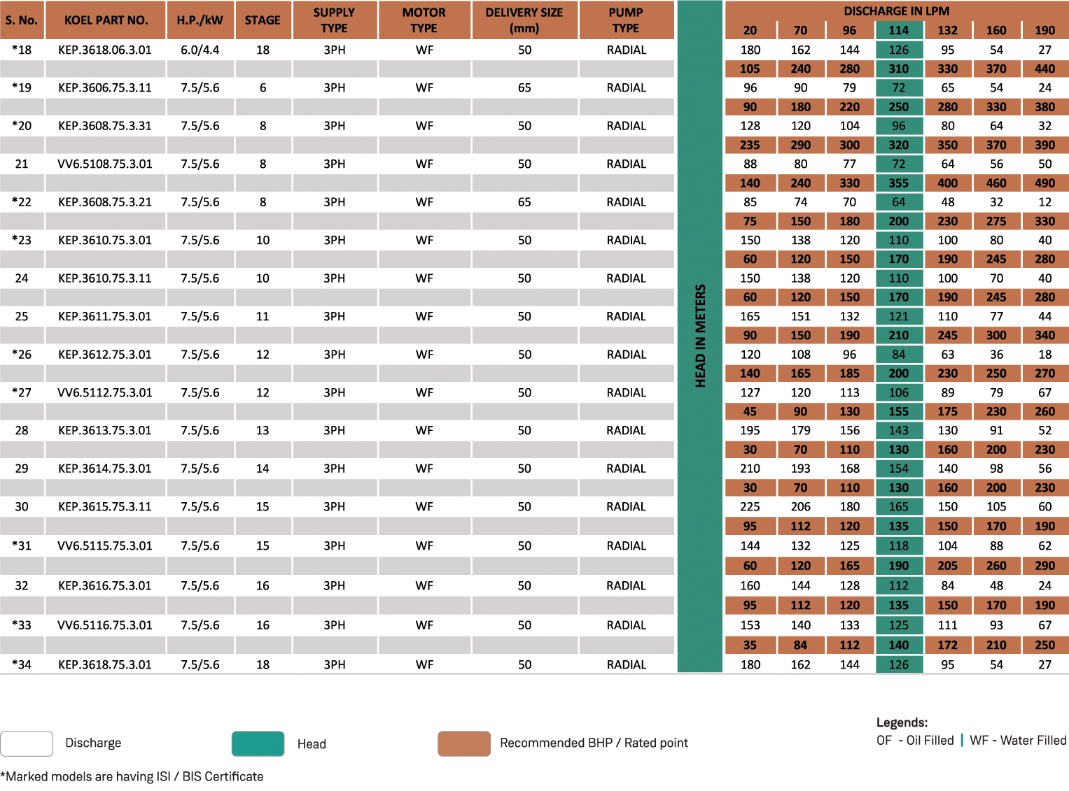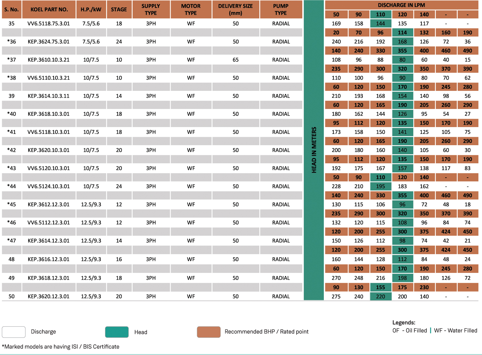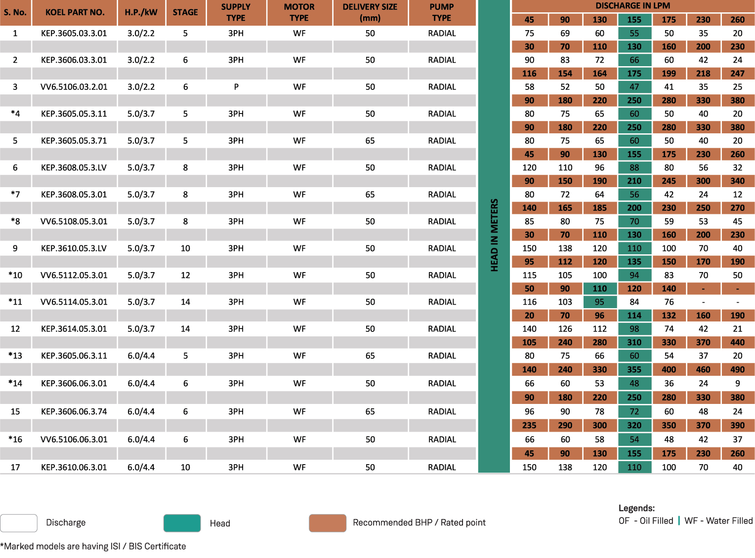KOEL Borewell Submersible Pump - V6 Series - Radial Flow (High Head Series)